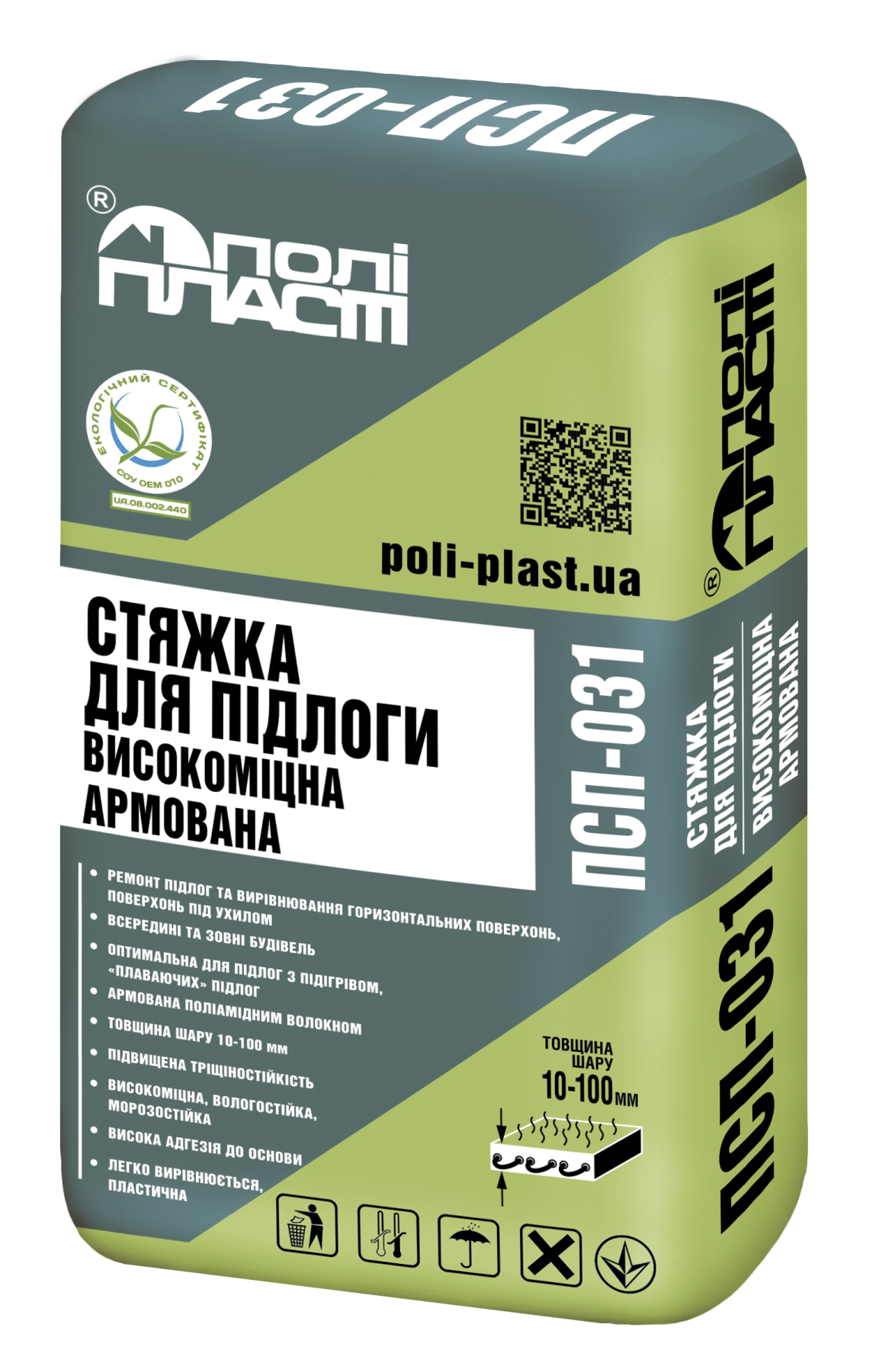 Стяжка для підлоги ПСП-031 – це готова суха суміш, армована поліамідним волокном, яка призначена для створення стяжок, вирівнювання та ремонту міцних основ (цементних, бетонних, керамзитобетонних) перед подальшим нанесенням нівелюючих сумішей або декоративних покриттів, таких як плитка, паркет, ламінат тощо. Цей матеріал ідеально підходить для використання як всередині сухих або вологих приміщень, так і для зовнішніх робіт.