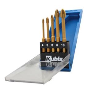 Це набір свердел, призначений для роботи зі склом та керамікою. Набір включає в себе 5 різців з діаметрами 4, 5, 6, 8 та 10 мм. Свердла мають циліндричний хвостовик, а вироблені з матеріалу YG6X. Тип свердла - перовий. Цей набір ідеально підходить для свердління отворів у склі та кераміці, забезпечуючи чисті та точні розвідувальні дії. Завдяки покриттю TiN свердла мають покращену стійкість до зношування та тривалу службу.