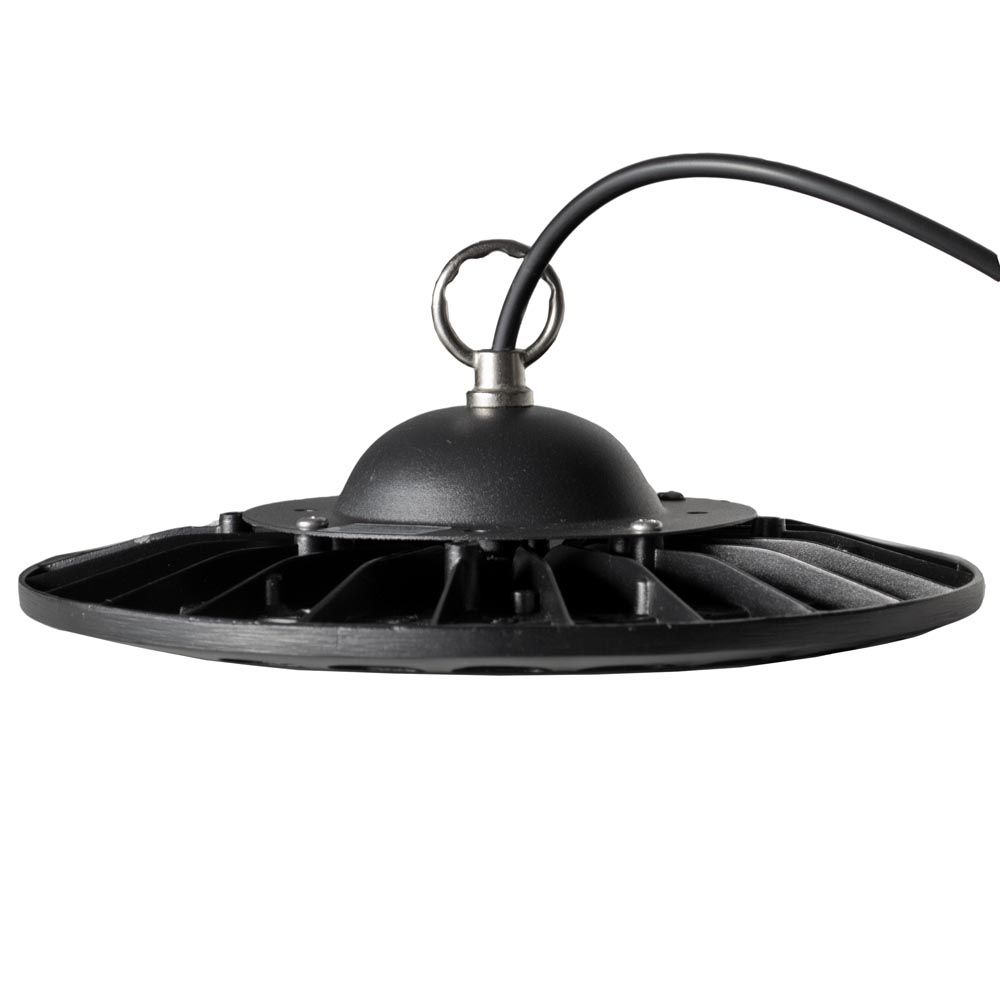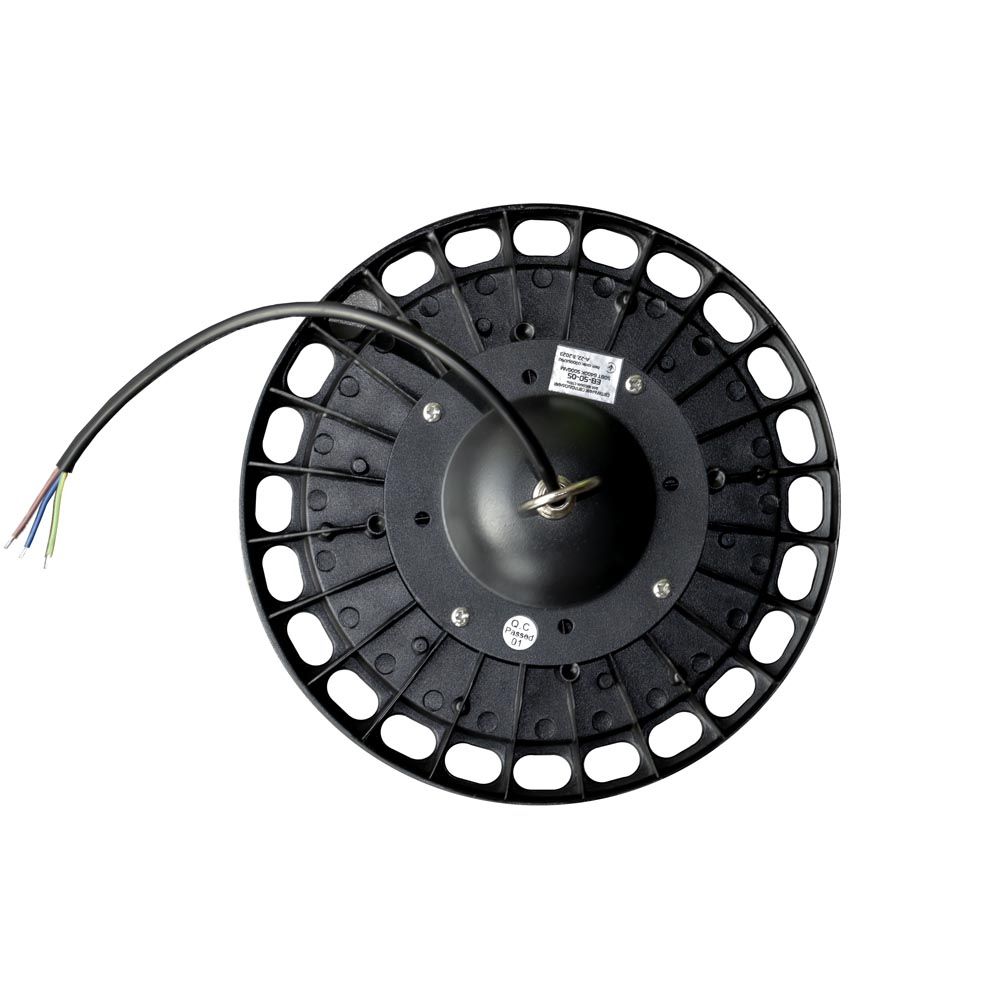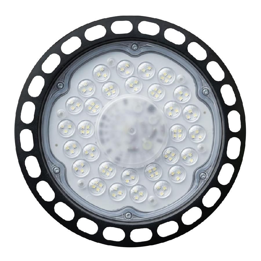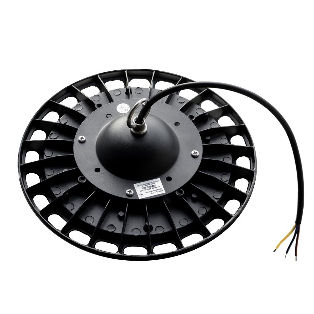 LED світильник EB-05 розроблений для освітлення приміщень з високими стелями. Відмінний варіант для складів, виробничих приміщень і т. п. Металеве кільце на корпусі З його допомогою світильник підвішується до стелі. Зручно регулювати необхідну висоту. Алюмінієвий ребристий корпус сплюсненої круглої форми Забезпечує ефективний тепловідвід. Це знижує швидкість деградації світлодіодів і збільшує максимальний термін експлуатації світильника до 30 000 годин. Захист IP65 Силіконовий ущільнювач надійно захищає світильник від попадання всередину пилу і вологи. Полікарбонатний розсіювач Ударостійкий матеріал, який не жовтіє з часом. Лінзи форми півсфери розміщені на кожній групі світлодіодів (SMD 2835) для точного напрямку світлового потоку. Лінійний драйвер Забезпечує відсутність мерехтіння світильника. Захищає від коротких замикань. Рекомендовано використовувати із запобіжниками PULS від «ЕВРОСВЕТ».