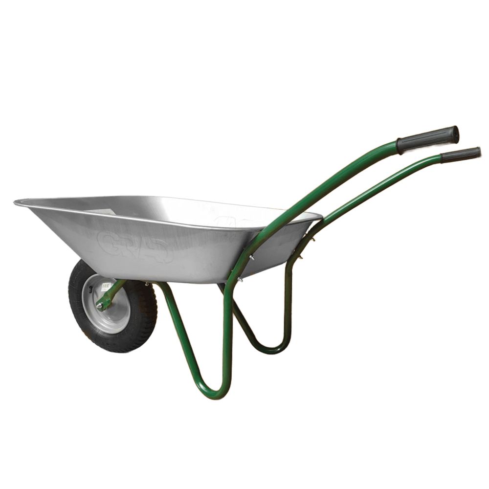 Тачка садова одноколісна 65л 90кг колесо 14" (з 4-х ЧАСТИН) GRAD (5055765) необхідна при виконанні будівельних та садово-городніх робіт для перевезення будівельних матеріалів, таких як щебінь, пісок, цемент, глина, сипучих матеріалів.