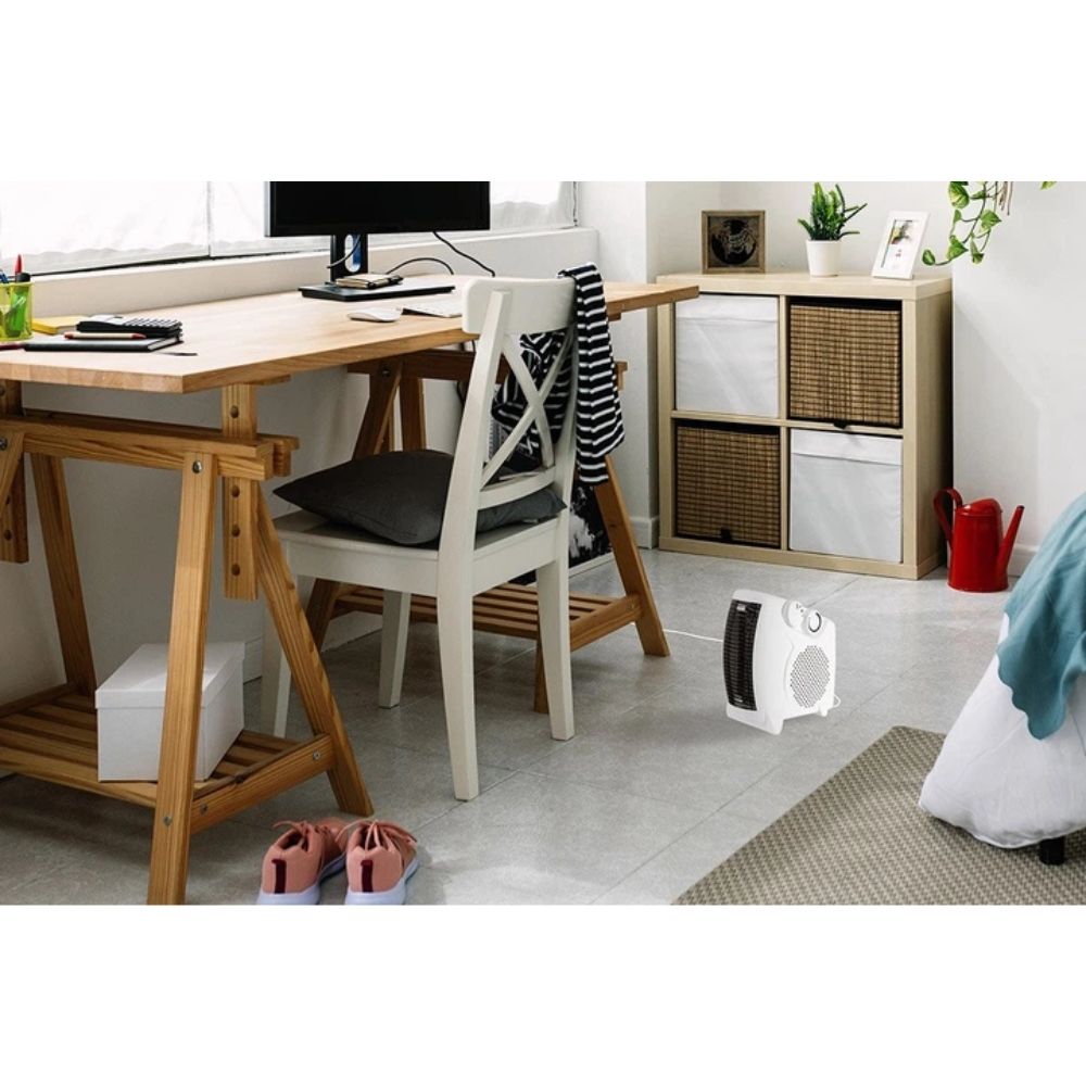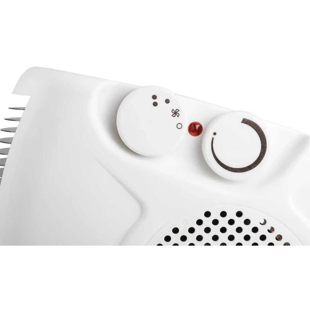Модель оснащена двома рівнями потужності та вбудованим термостатом, який підтримує стабільну температуру та запобігає перегріву. Механічне керування забезпечує просте й надійне налаштування режимів роботи. Завдяки компактним розмірам, малій вазі та ручці для перенесення тепловентилятор зручно переміщати та використовувати в різних кімнатах — удома або в офісі.