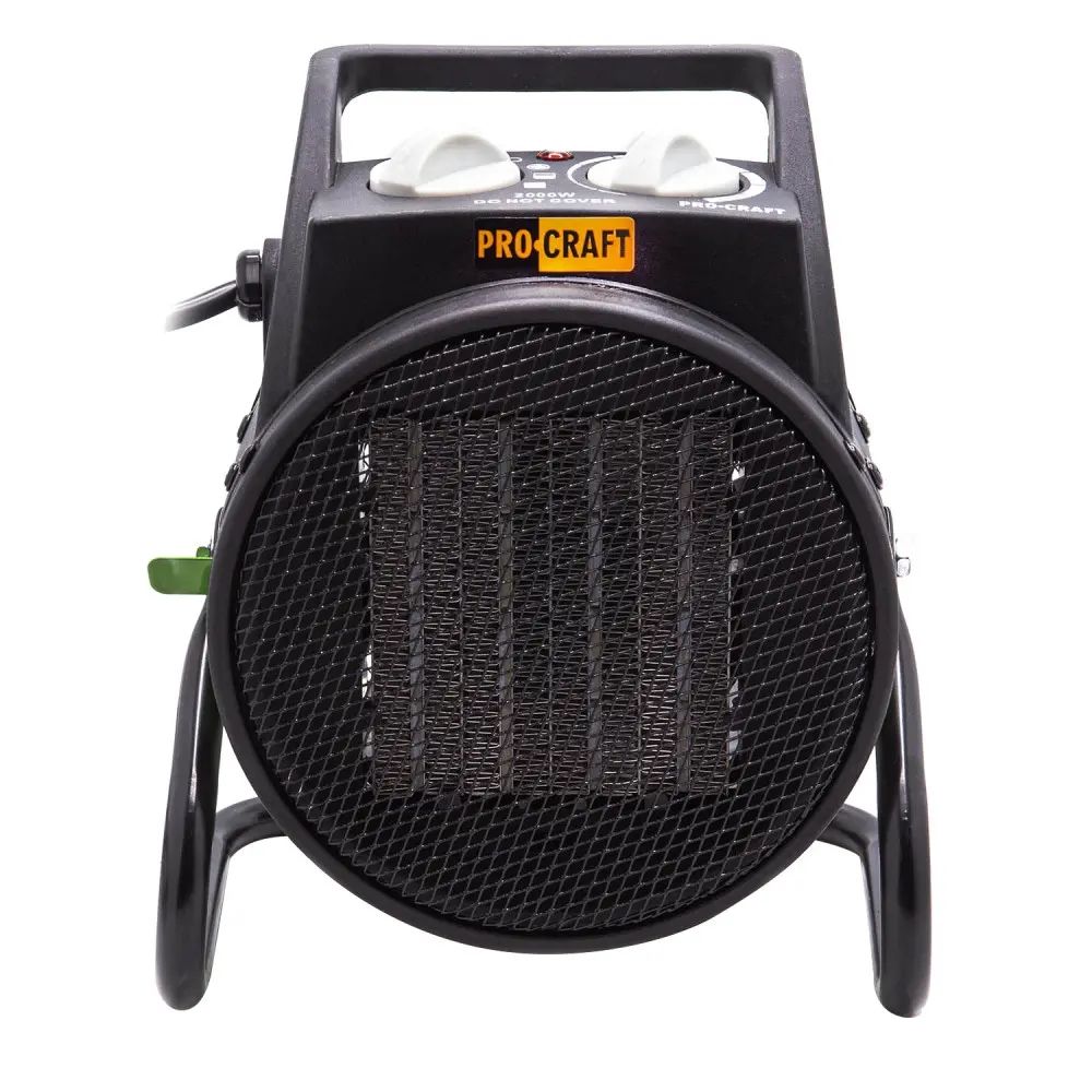 Тепловентилятор Procraft FP-20 - потужний промисловий настільний обігрівач з електричним теплоносієм. Завдяки потужності 2000 Вт він здатний забезпечити комфортну температуру на площі до 20 квадратних метрів. Він має ручку для зручного переміщення, що робить його мобільним і зручно переносним. Цей тепловентилятор є ідеальним варіантом для використання у промислових приміщеннях.