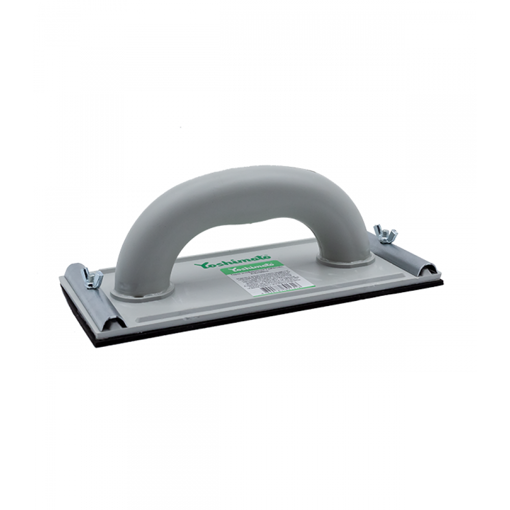 Терка шліфувальна Yoshimoto, 215×100 мм — інструмент для затирання та вирівнювання поверхонь за допомогою наждачного паперу або абразивної сітки. Має зручне кріплення абразивних матеріалів та оптимальний розмір для ефективної обробки. Ідеально підходить для підготовки стін і стель перед фарбуванням чи шпаклюванням