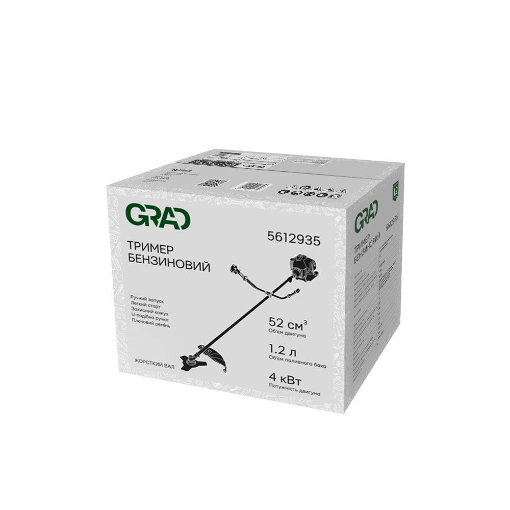 Тример бензиновий 4.0кВт 52см жорсткий вал U-ручка (котушка, ніж) (з 2-х частин) GRAD (5612935) підходить для невеликих приватних господарств та дачних ділянок