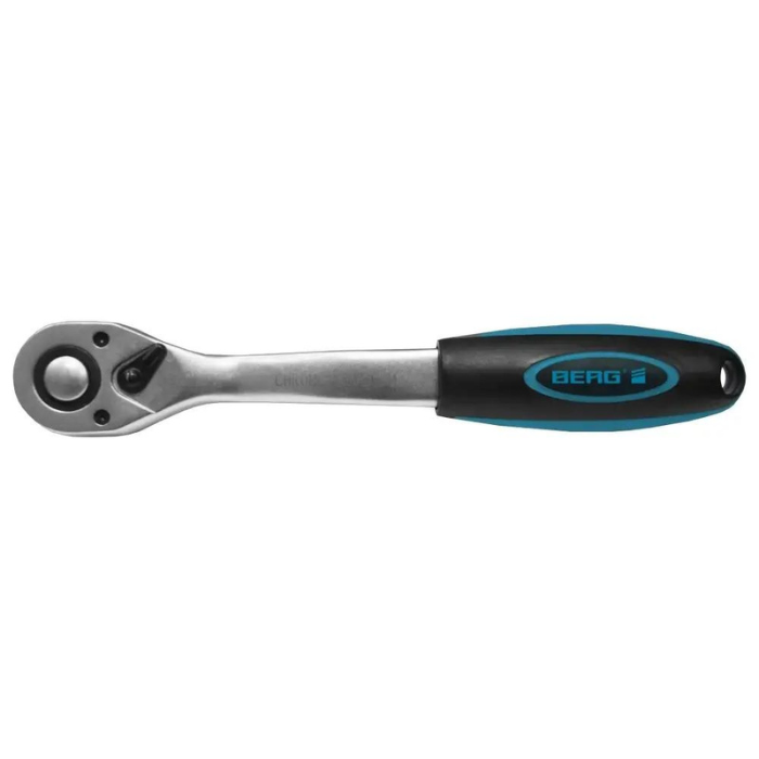 Тріскачка реверсивна Berg з характеристиками: розмір посадкового квадрата - 1/4``, тип - ключі, форма ключа - прямий, кількість зубців - 72. Вона виконана зі сплаву Cr-V, що забезпечує високу міцність і довговічність. Завдяки храповому механізму, тріскачка може обертатися вперед і назад, що дозволяє зручно виконувати роботи. Цей інструмент є незамінним помічником при ремонті меблів, автомобілів, господарських потребах та багатьох інших сферах.