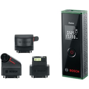 Цифровий лазерний далекомір Bosch Zamo III Set (20 м) (0603672701) - надійний і зручний інструмент для вимірів в будинку або на будівництві. Завдяки точній електроніці та лазерному показнику він дозволяє з великою точністю вимірювати відстань до 20 метрів. Легкий і компактний, він зручно лежить в руці і працює швидко. Рекомендується для використання як професіоналами, так і аматорами. Цей набір включає в себе додаткові аксесуари, що роблять роботу ще більш зручною.