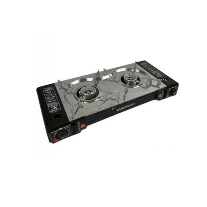 Ця плитка газова в кейсі з двома комфорками представляє собою надійний і зручний прилад для приготування їжі. Вона працює на газовому пальнику і оснащена п'єзопідпалюванням, що дозволяє швидко і легко запалити вогонь. Плитка має дві конфорки і потужність в 5000 Вт, що забезпечує швидке нагрівання і кип'ятіння. Чорний кольоровий дизайн додає їй елегантності і стильності.