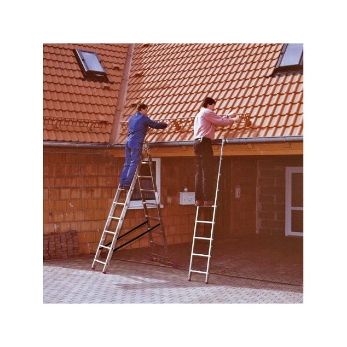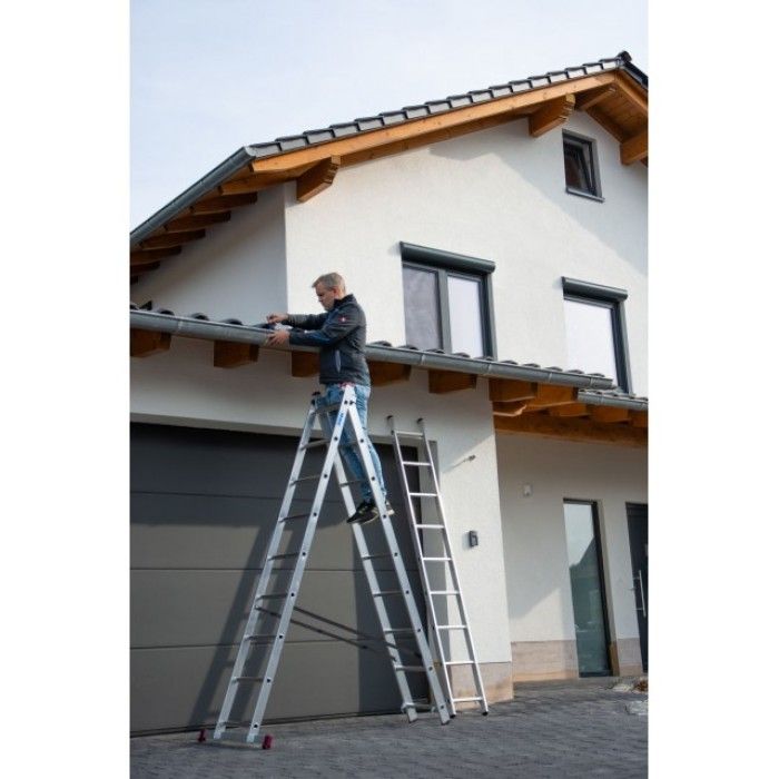 Універсальна 3-секційна драбина KRAUSE Corda (3х10 сходинок) - ідеальний помічник в будинку, на дачі або в гаражі. Вона має зручні ступені з антискользящим покриттям, що дозволяє стійко стояти на ній. Драбина легка та компактна, що ускладнює її зберігання. Крім того, у неї є спеціальні з'єднувальні елементи, які можна блокувати для забезпечення додаткової безпеки під час роботи на висоті. Вона виготовлена з високоякісних матеріалів, що забезпечує довговічність та надійність використання.
