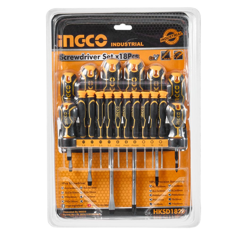 Набір включає 8 стандартних викруток та 10 прецизійних міні-викруток, зручно розміщених у пластиковому кейсі, який легко зберігати або повісити на стіну.