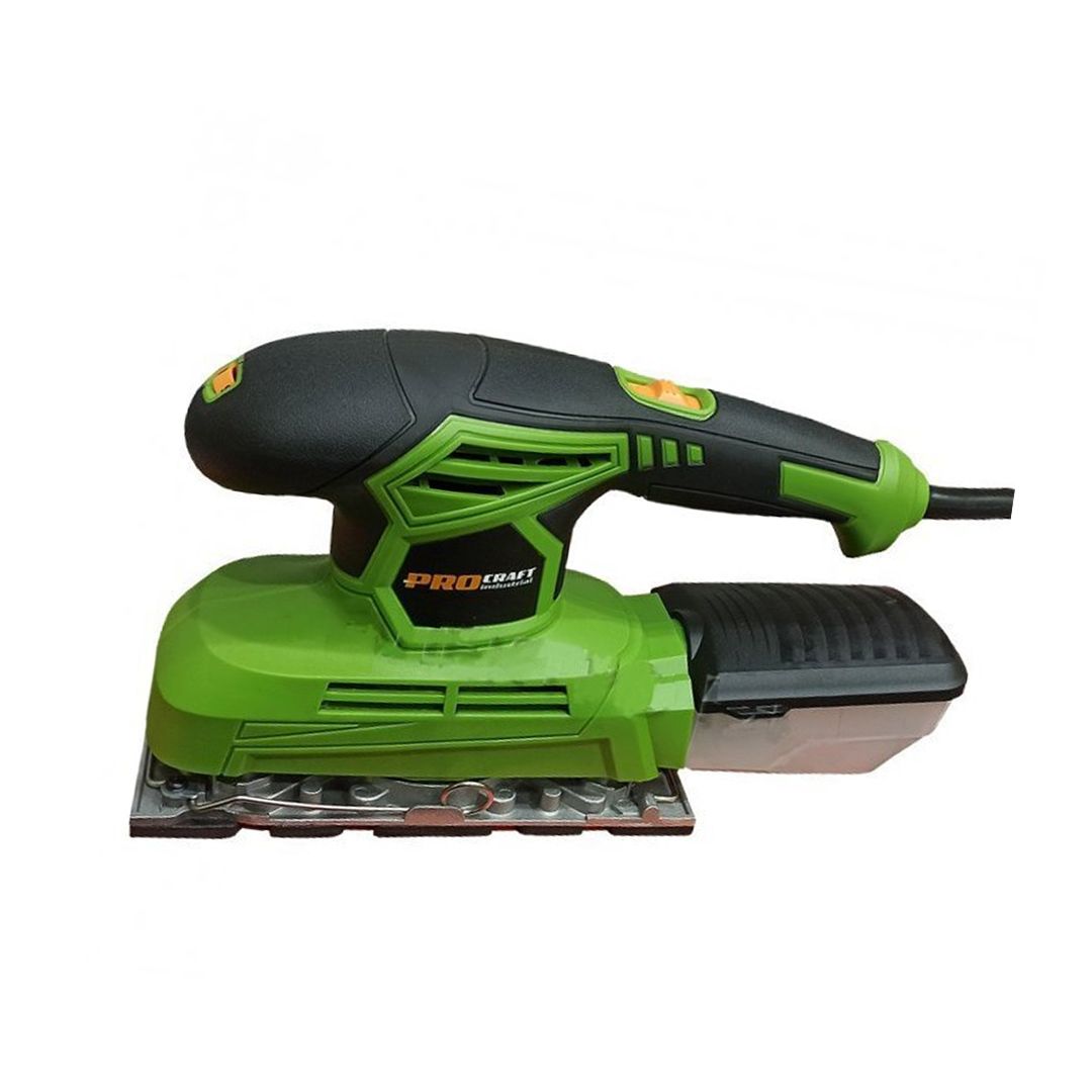 - Procraft PV300 - електрична віброшліфувальна машина потужністю 300 Вт і частотою вібрації 6000-12000 обертів в хвилину. - Точильна пластина розміром 115х230 мм - Призначений для шліфування або видалення фарби, іржі та інших забруднень з поверхонь з дерева, металу, пластику тощо. - Оснащений пилозбірником і системою зниження вібрації - Легкий і компактний, з ергономічним дизайном для високої ефективності та простоти у використанні - Напруга: 220-240В/50Гц - Потужність: 300 Вт - Частота вібрації: 6000-12000 ударів/хв - Розмір шліфувального столу: 115х230 мм - Вага: 2,3 кг