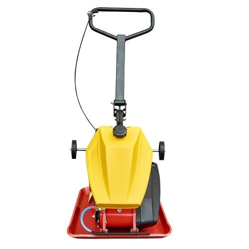 З’ємна ручка і вузол для підйому у вигляді рами над двигуном дає змогу без проблем транспортувати пристрій. Також для зручності транспортування ця вібраційна плита обладнана транспортувальними колесами. У комплект входить свічковий ключ і поліуретановий килимок.