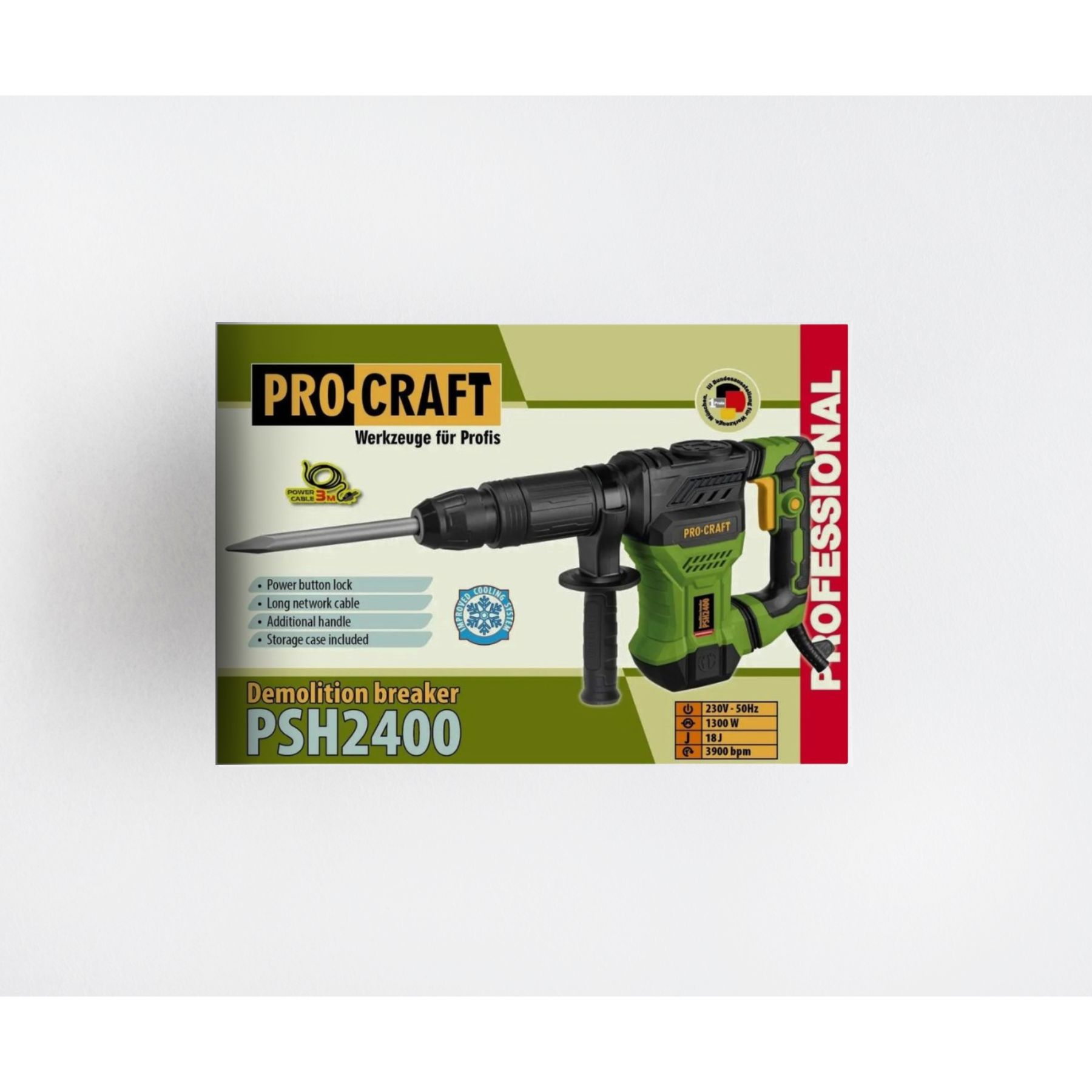 Відбійний молоток Procraft PSH2400 - це високопродуктивний інструмент з професійними характеристиками, призначений для знищення бетону, цегли, створення пазів та отворів у будівлях.