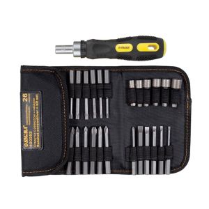 Характеристики Тип набір викрутки з бітами та торцевими насадками Кількість предметів 26 (з урахуванням адаптера і викрутки) матеріал CrV сталь Викрутка з реверсом, двокомпонентна ручка Біти 18 шт, 1/4", 50 мм: — SL: 3, 4, 5, 6, 7 — PH: 0, 1, 2, 3 — TORX: T10, T15, T20, T25, T27, T30 — PZ: 1, 2, 3 Торцеві насадки 6 шт: 5, 6, 7, 8, 9, 10 мм Адаптер 60 мм Артикул 4002111 Бренд SIGMA Упаковка блістерКомплектація Викрутка з реверсом 18 біт (CrV сталь) 6 торцевих насадок Адаптер 60 мм Упаковка-блістерПереваги Викрутка з реверсом для швидкого перемикання напрямку обертання Міцна хром-ванадієва сталь CrV Двокомпонентна ручка для зручності роботи Широкий набір біт та торцевих головок для універсального застосування Компактний набір у блістері для зручного зберігання та транспортування