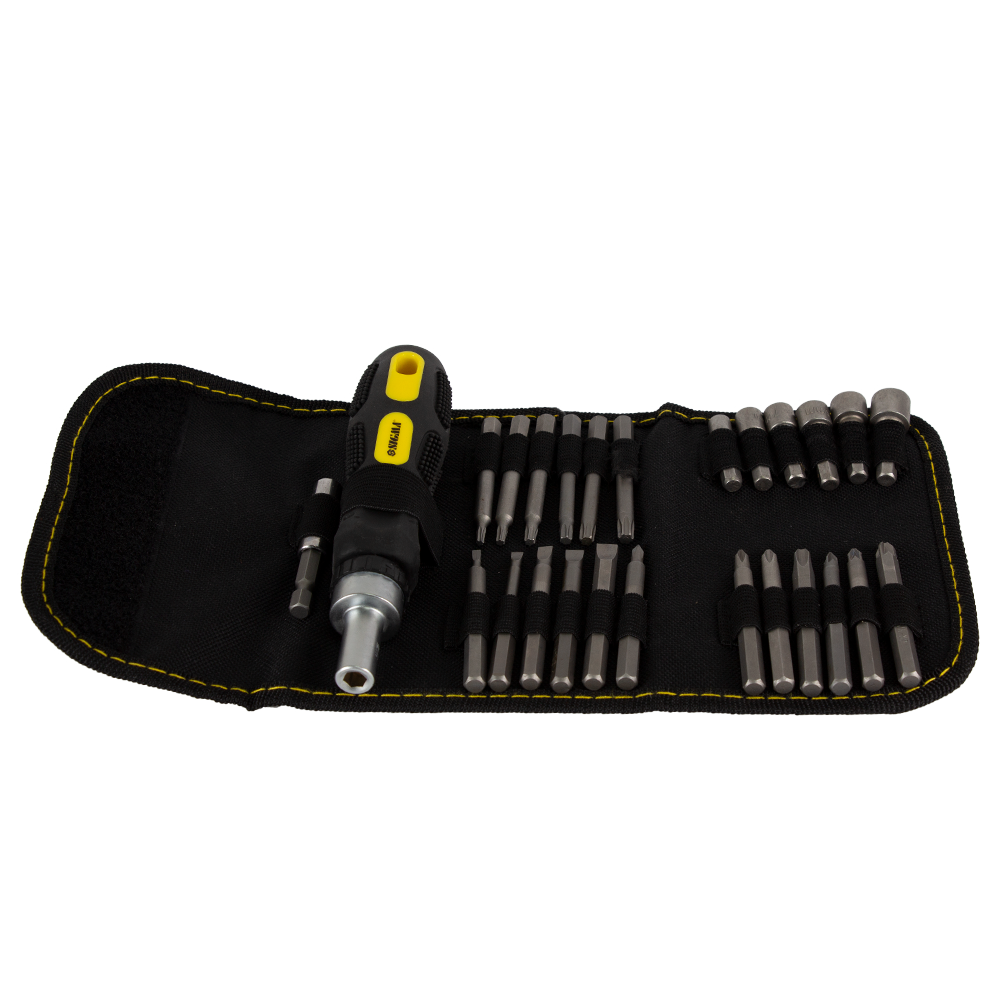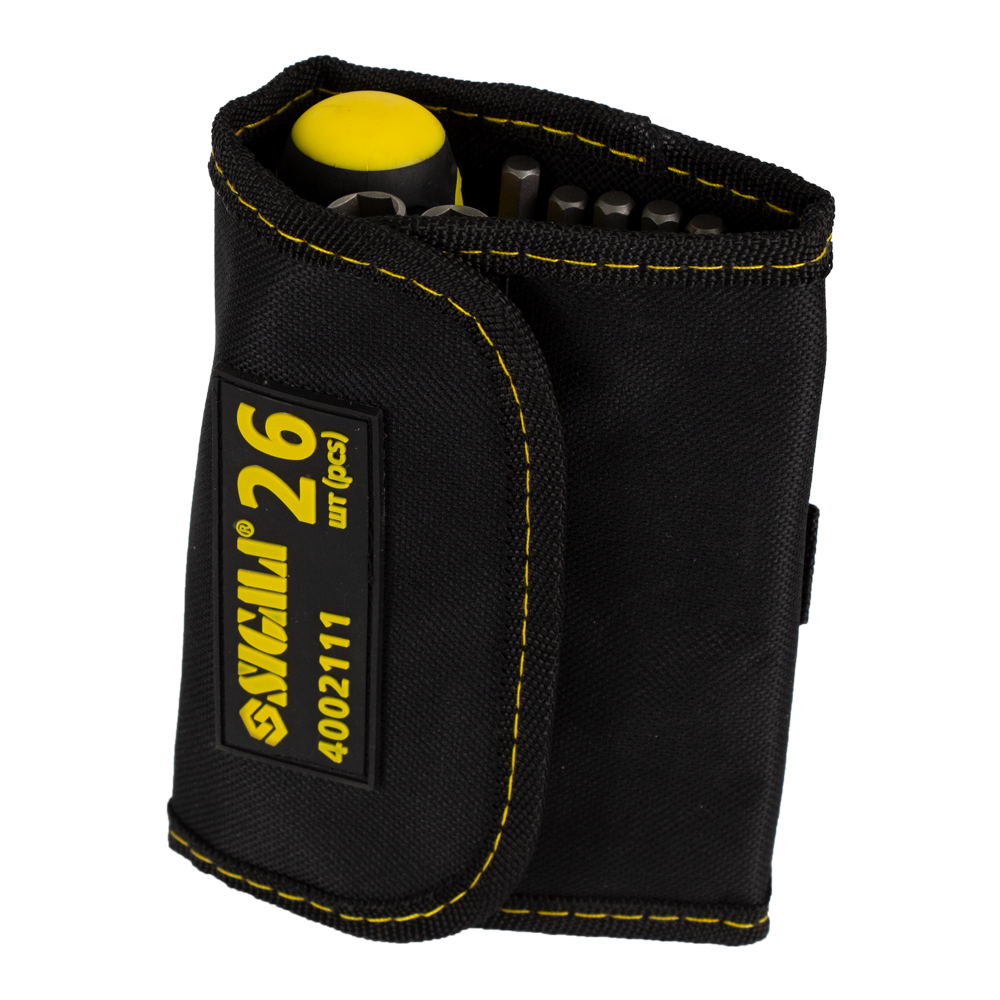 У комплект входять 18 біт, 6 торцевих головок та адаптер у блістерній упаковці.