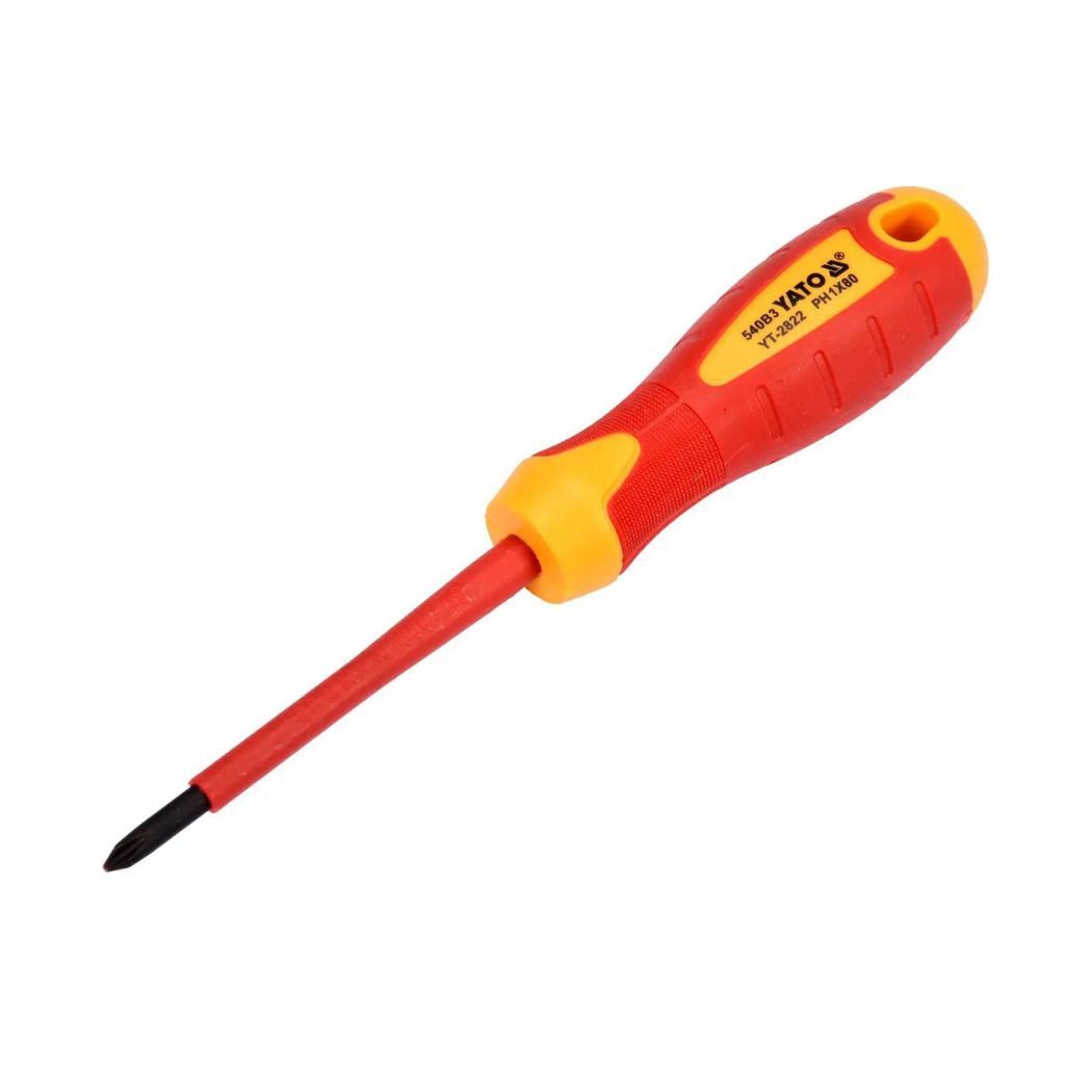 Інші унікальні властивості та переваги викрутки хрестової діелектричної ізольованої YATO: РН1 х80мм. VDV до 1000V:- Має хрестовий (Phillips/PH) наконечник для роботи з різними шліцами- Ідеальний для професіоналів та домашнього використання- Забезпечує точність та зручність у виконанні завдань- Міцний і витривалий- Виготовлена з високоякісних матеріалів для надійності та довговічності- Ідеально підходить для роботи з електричними пристроями та обладнанням