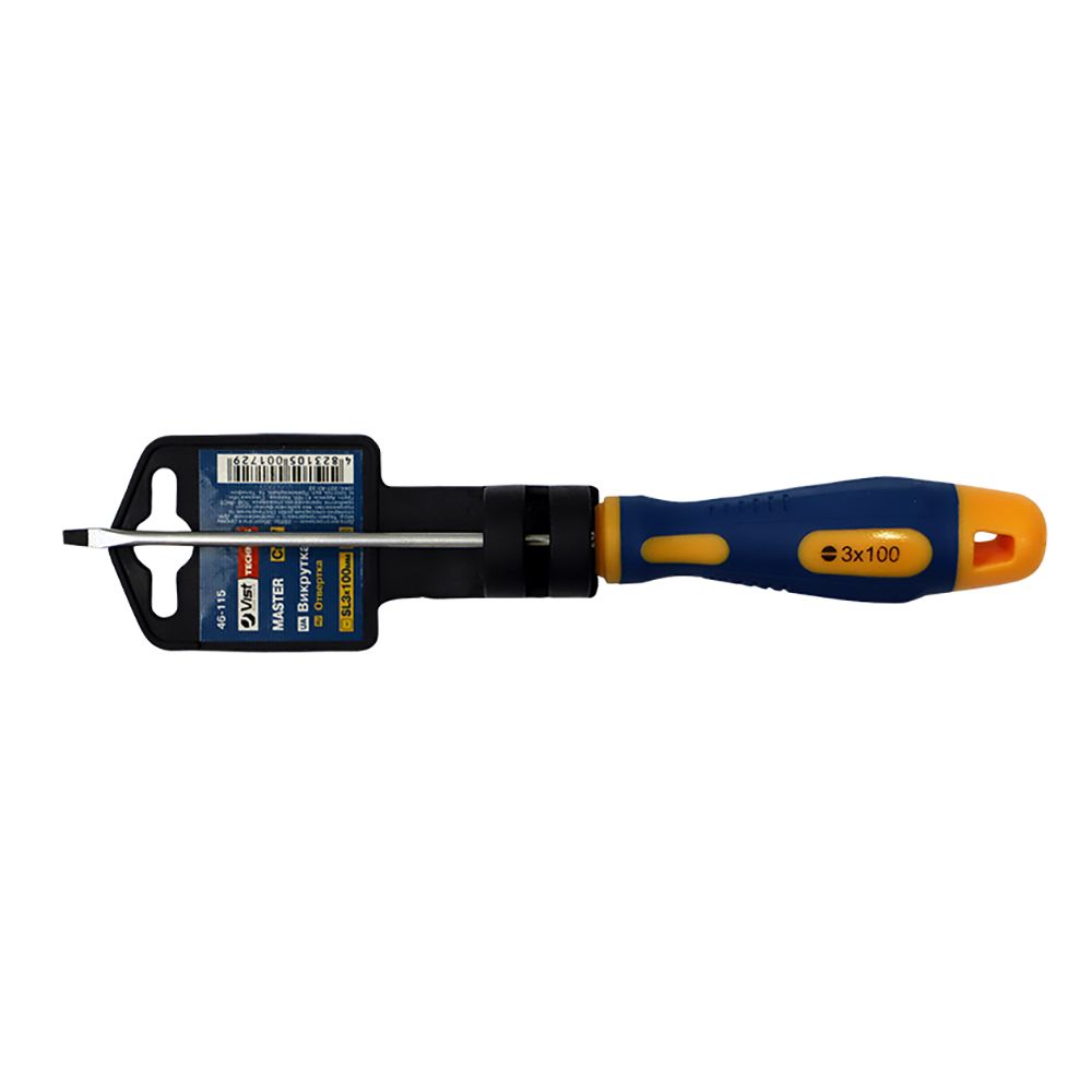 Викрутка "Master" - ідеальний інструмент для надійного й точного відкручування або закручування шліцевих гвинтів. Тип наконечника - плоский (SL) з номером шліца 3. Довжина робочого стрижня становить 100 мм. Ручка зроблена з пластику і гуми, що забезпечує зручний і комфортний захват інструменту. Викрутка "Master" має ергономічне руків'я, що дозволяє працювати з нею протягом тривалого часу без дискомфорту і втоми. Ця викрутка дуже зручна в застосуванні, допоможе вам легко виконувати будь-які ремонтні роботи або збирання меблів. Вона стане незамінним помічником в будинку, гаражі або на робочому місці.