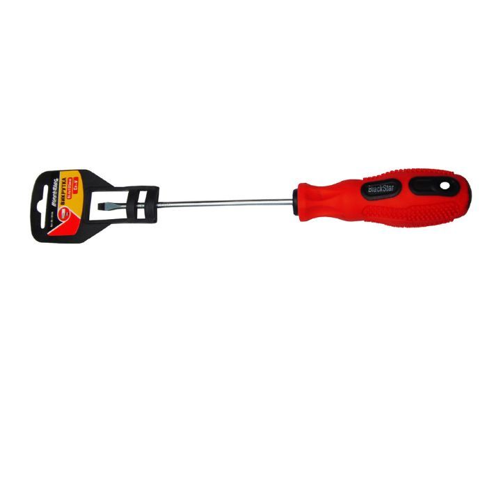 Викрутка плоска SL4х125 мм BlackStar 90-10106 - незамінний інструмент для праці з різними механічними пристроями. Викрутка має плоский наконечник з номером шліца 4, що дозволяє впевнено фіксувати її в шліці гвинта або шурупа. Довжина робочого стрижня складає 125 мм, що забезпечує зручність роботи в складних точно недоступних місцях. Ручка викрутки виготовлена з композитного пластику, що забезпечує стійкість до пошкоджень і зносу. матеріал робочої частини - хром-ванадієва сталь - гарантує довгий термін експлуатації викрутки. Викрутка підходить для використання як в професійних майстернях, так і в побуті.