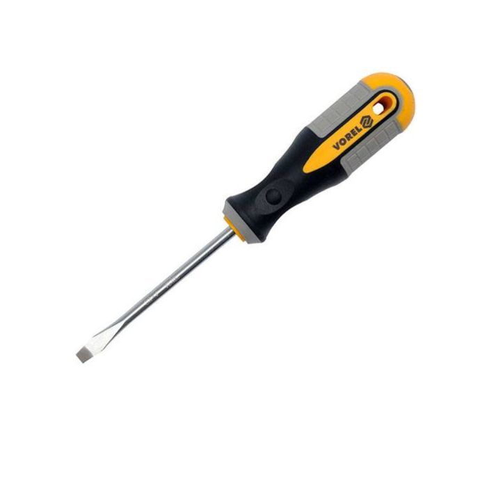 Викрутка плоска VOREL SL6 х 100 мм виготовлена з хромо-ванадієвої сталі (CrV).