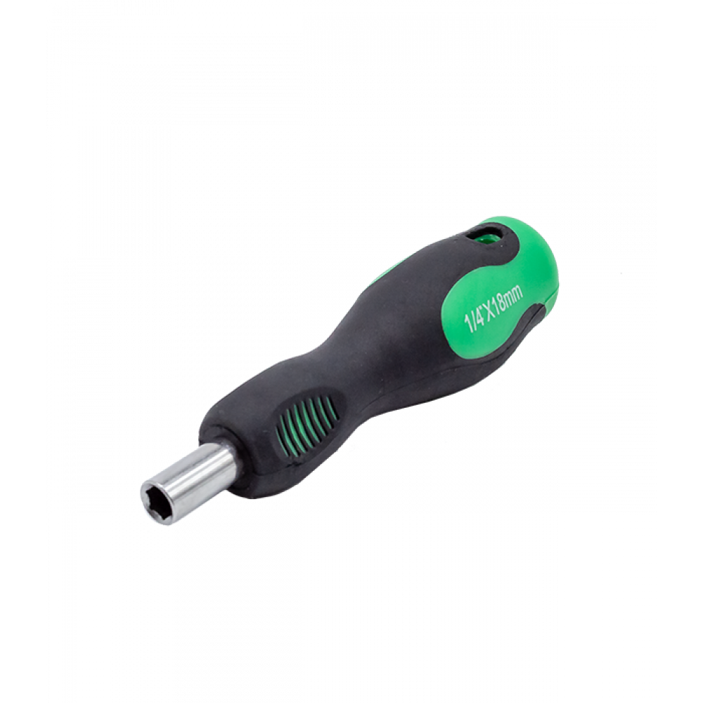 Основні характеристики: Тип: викрутка з тримачем для біт Сумісність: біти з хвостовиком 1/4'' Довжина: 18 мм матеріал: Cr-V сталь Твердість: 50–52 HRC Застосування: точні монтажні та ремонтні роботи