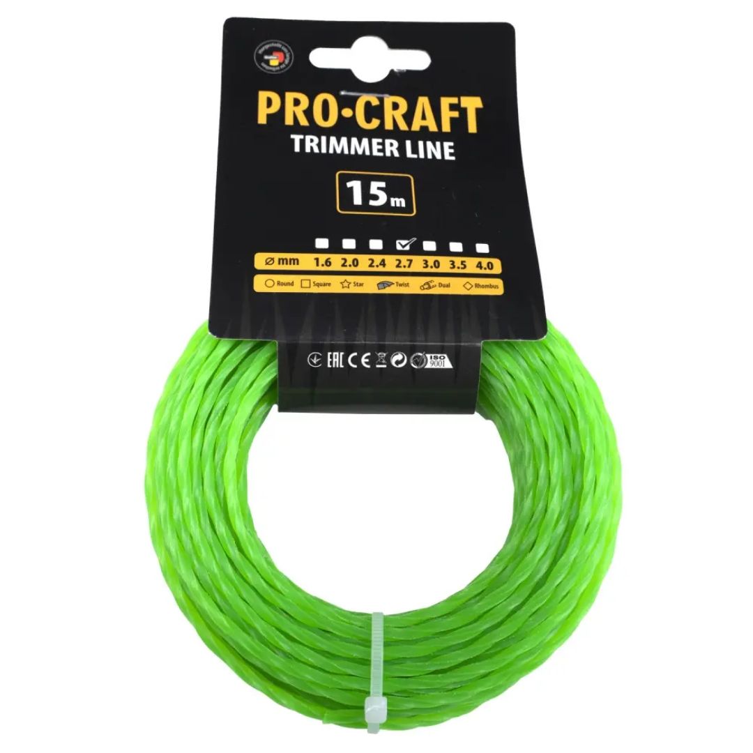 Волосінь для тримера Procraft спіраль 2.7 мм, 15 м призначена для ефективного скошування трави та бур’янів на присадибних ділянках. Спіральна форма сприяє рівномірному різу та зменшенню навантаження на двигун тримера. Підходить для використання з електричними та бензиновими моделями, що підтримують діаметр 2.7 мм.