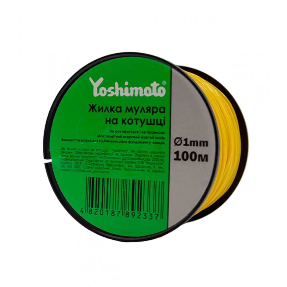 Особливості товару: Вид: Шнури відфутболювальні (розмічальні) Колір: Жовтий Призначення: Для монтажу Довжина, м: 100 Діаметр, мм: 1Сфери застосування:Ці шнури використовуються для різних видів монтажних робіт, таких як встановлення плитки, маркування точок на побудовах, стяжки і багато іншого.