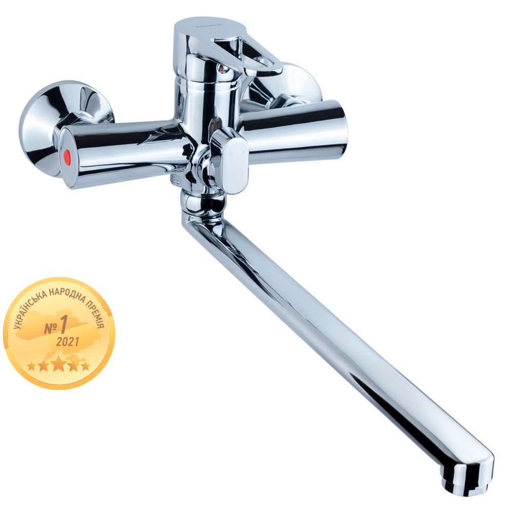 Змішувач для ванни AQUATICA HK-2C230C — зручність і функціональність з довгим виливомМодель HK-2C230C від бренду AQUATICA — це універсальний одноважільний змішувач із довгим поворотним виливом 350 мм, що дозволяє ефективно використовувати його як для наповнення ванни, так і для обслуговування раковини, розташованої поруч.