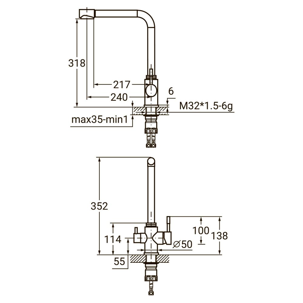 Модель KT-4B770P – це врізний, одноважільний кухонний змішувач подвійного призначення із можливістю підключення до системи фільтрації води.