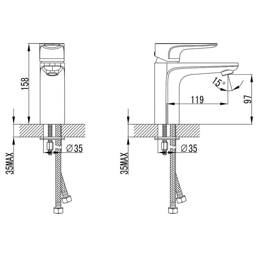 Монтаж: У комплекті є надійна кріпильна шпилька з нержавіючої сталі та два гнучкі шланги з нержавіючої сталі (1/2" x M10 x 400 мм) для підключення до водопроводу.