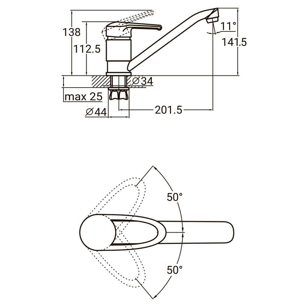 Оснащений поворотним прямим виливом довжиною 250 мм, він забезпечує комфорт під час щоденних кухонних справ і підходить для мийок середнього розміру.