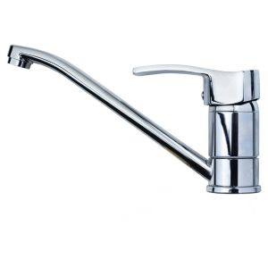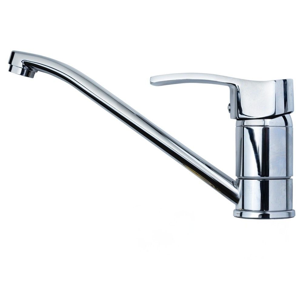 Основні характеристики: Тип: одноважільний кухонний змішувач Вилив: прямий, довжина 250 мм, поворот 360° матеріал: латунь Покриття: хромонікель Картридж: керамічний, 40 мм Тип монтажу: на гайці, на горизонтальну поверхню Тиск: робочий діапазон — від 0,5 до 10 бар Вимоги до води: чиста, без абразивних частинок (pH 6.