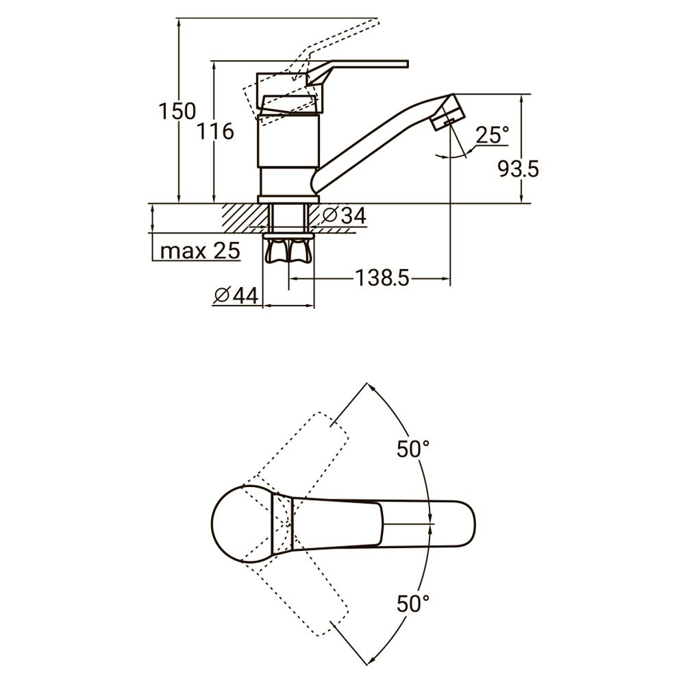 Прямий гусак довжиною 150 мм зручний у щоденному користуванні, а одноважільна система забезпечує швидке й плавне регулювання потоку та температури води.