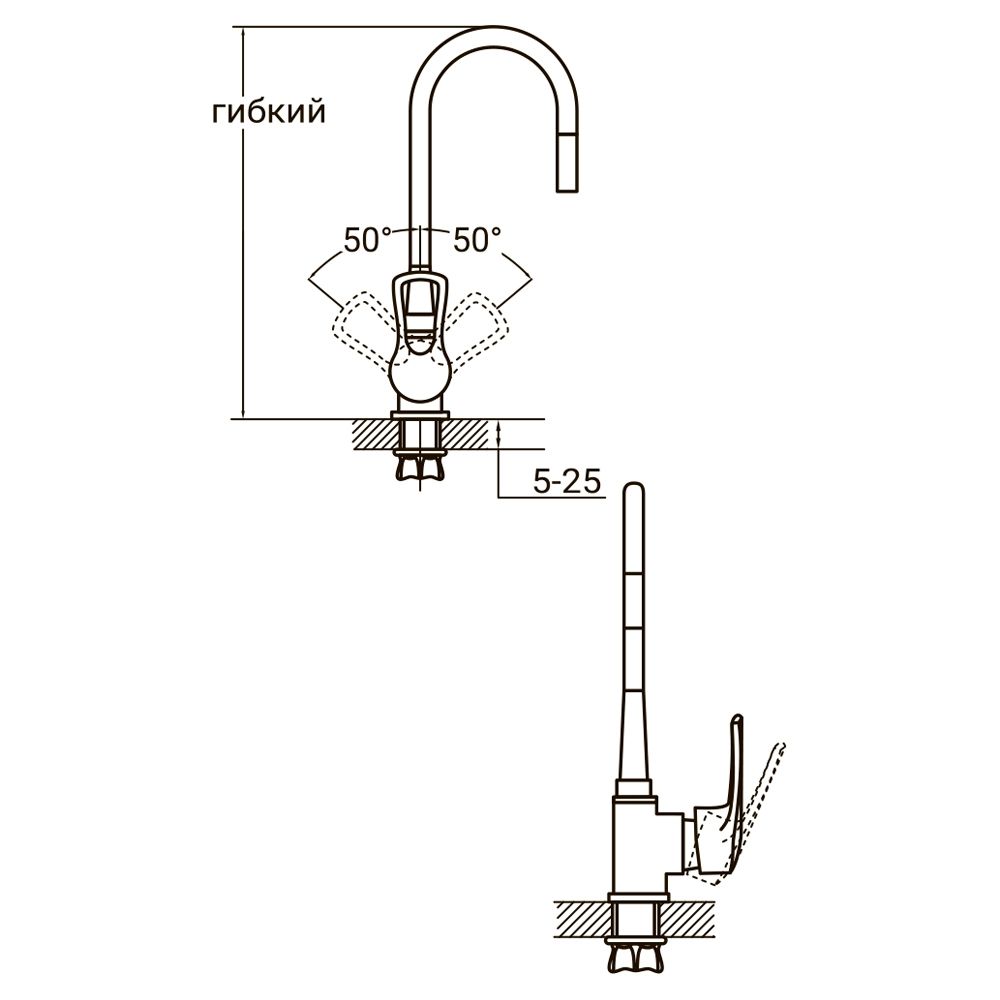 Характеристики Тип: одноважільний кухонний змішувач Діаметр картриджа: 40 Гусак: силіконовий, гнучкий, чорний Підключення: на гайці Механізм управління: картриджний Робочий тиск: 0.