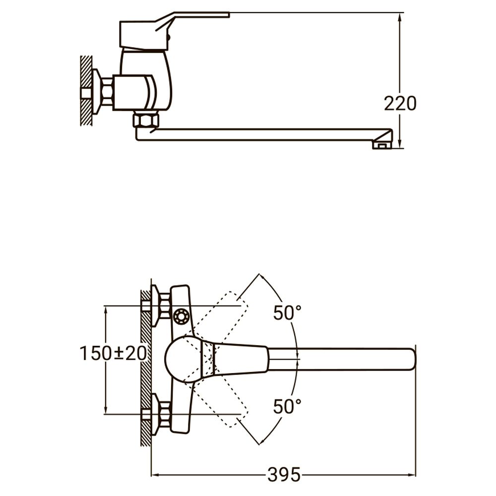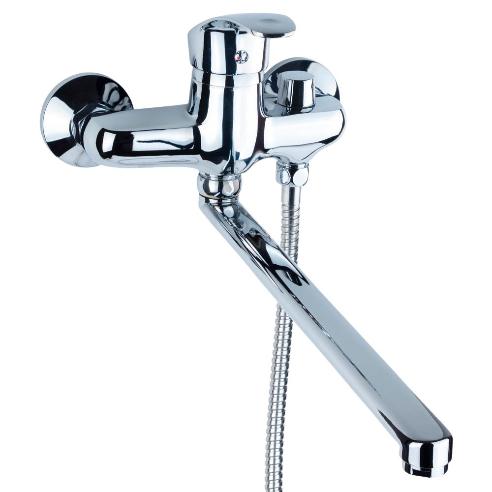 Надійний одноважільний змішувач для ванни з довгим прямим поворотним виливом (350 мм) і вбудованим картриджним дивертором для зручного перемикання подачі води між виливом і душем. Оснащений керамічним картриджем 40 мм, що забезпечує плавне регулювання натиску та температури води. Має хромонікелеве покриття, стійке до корозії та зносу.