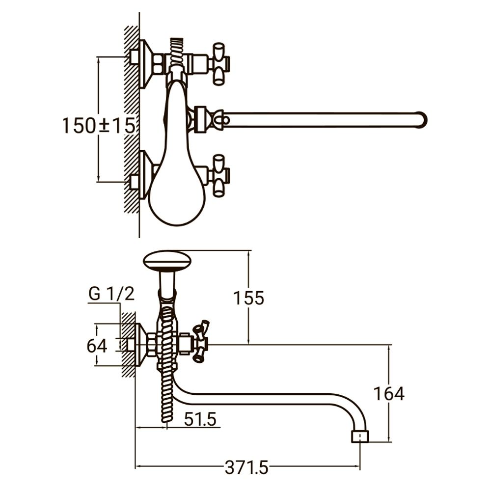 Надійний двохвентильний змішувач для ванни з вигнутим виливом і вбудованим кульовим дивертором. Конструкція забезпечує плавне та зручне перемикання потоку води між виливом і душем. Виконаний із якісних матеріалів, стійких до корозії, що гарантує довговічність і стабільну роботу навіть при інтенсивному використанні.