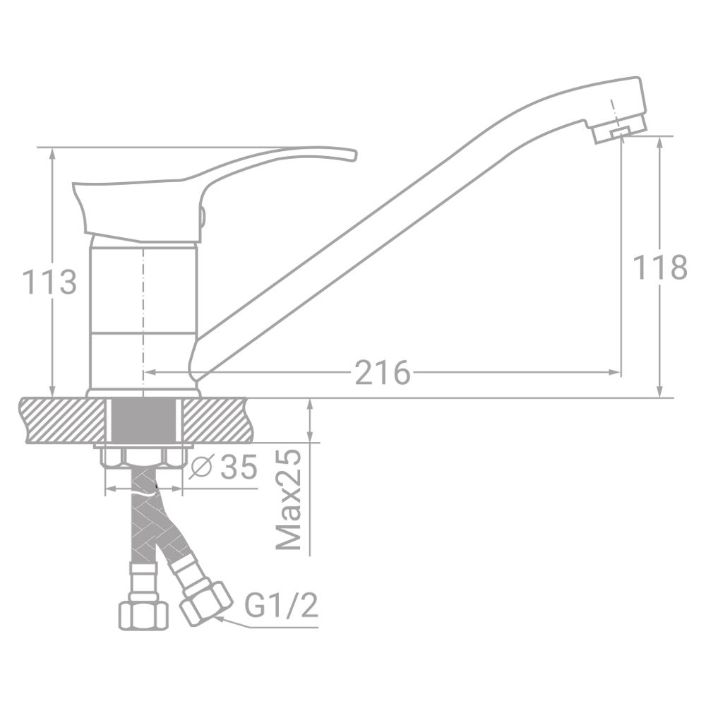 Змішувач TAU SE-1B245C s07 40 для кухні, гусак прямий 250 мм, на гайці (9807110)