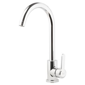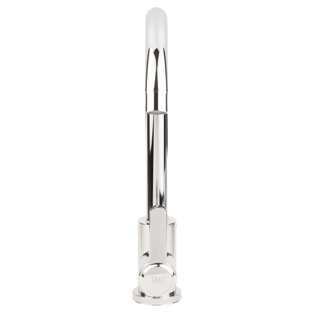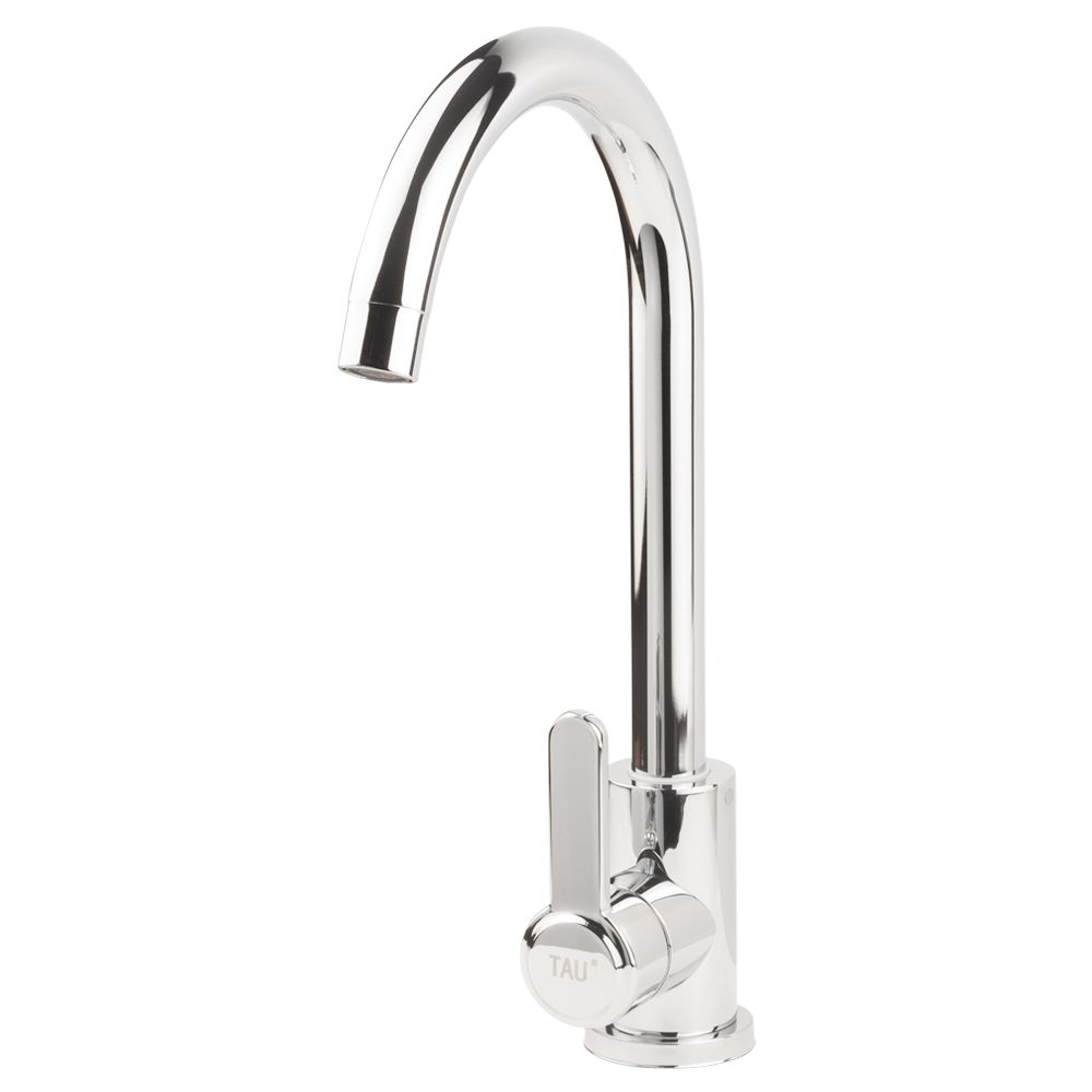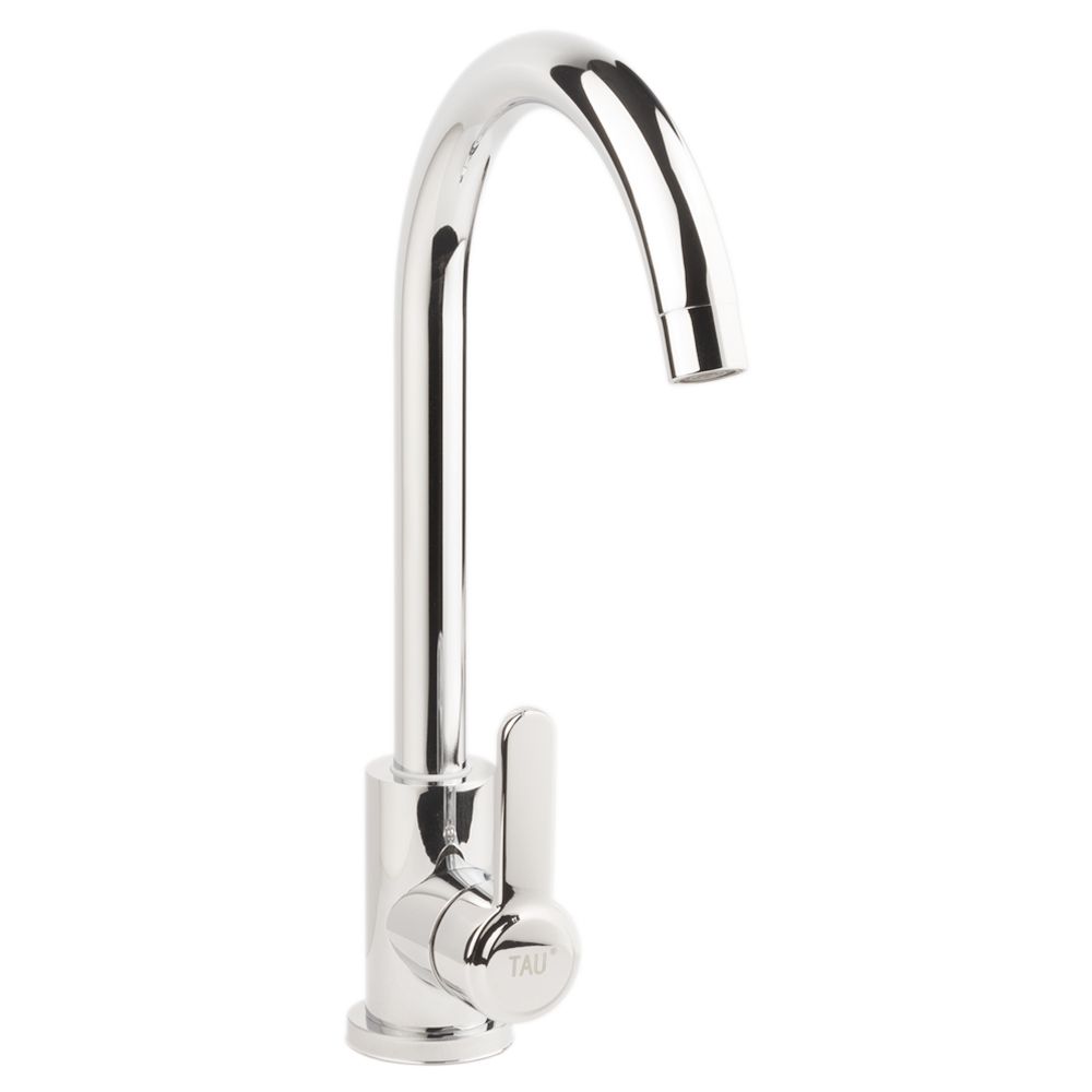 Кухонний змішувач TAU серії s18 виготовлений із нержавіючої сталі та вкритий NiCr-покриттям, яке забезпечує захист від корозії й надає поверхні привабливого блиску. Модель не містить свинцю, тому є безпечною у використанні. Вилив типу «вухо» зручний у щоденній експлуатації, а конструкція оптимально підходить для стандартних кухонних мийок.
