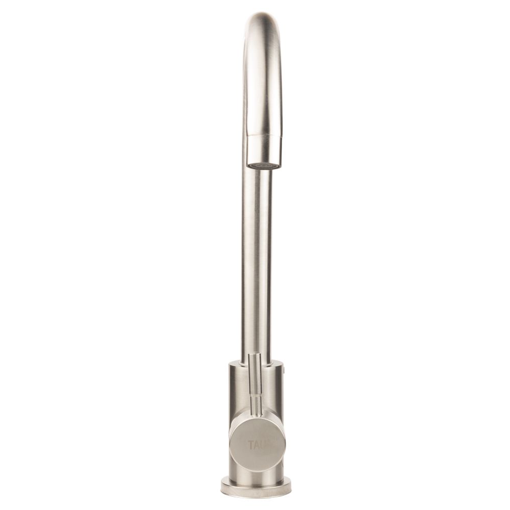 Кухонний змішувач TAU серії s20 виготовлений із нержавіючої сталі, що забезпечує високу міцність, довговічність та повну відсутність свинцю у складі. Вигнутий вилив типу «вухо» робить модель зручною для щоденного користування на стандартних мийках.