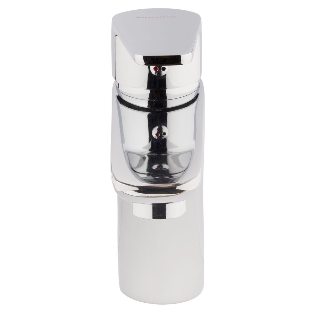 — компактний одноважільний змішувач із монолітним виливом, хромонікелевим покриттям і надійним кріпленням на шпильці. Постачається з гнучкими підводами в нейлоновому обплетенні.