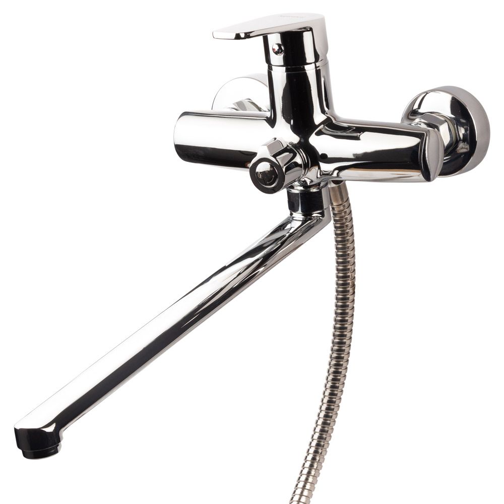 Функціональний одноважільний змішувач з довгим прямим виливом, що обертається на 360°. Вбудований картриджний дивертор забезпечує плавне та легке перемикання між подачею води у вилив і душ. Хромонікелеве покриття захищає від корозії та надає виробу стильного блиску, який зберігається навіть при тривалому використанні.