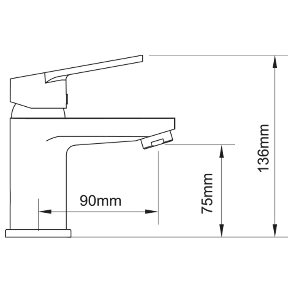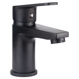 Технічні характеристики: Тип: одноважільний змішувач для раковини Картридж: керамічний 35 мм Вилив: монолітний Покриття: PVD, чорне Тип кріплення: шпилька матеріал: сплав на основі міді, алюмінію та цинку Комплектація: 2 гнучкі підводи " M10 400 мм Гарантія: 36 місяців Вага: 0.