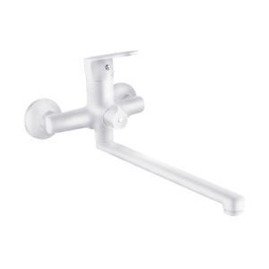 Характеристики: Тип: одноважільний Картридж: керамічний 35 мм Вилив: прямий, 350 мм, поворотний на 360° Дивертор: вбудований, картриджного типу Покриття: PVD, білий колір Кріплення: ексцентрики з декоративними накладками (нержавіюча сталь) матеріал корпусу: сплав на основі міді, алюмінію і цинку Гарантія: 36 місяців Вага: 1.
