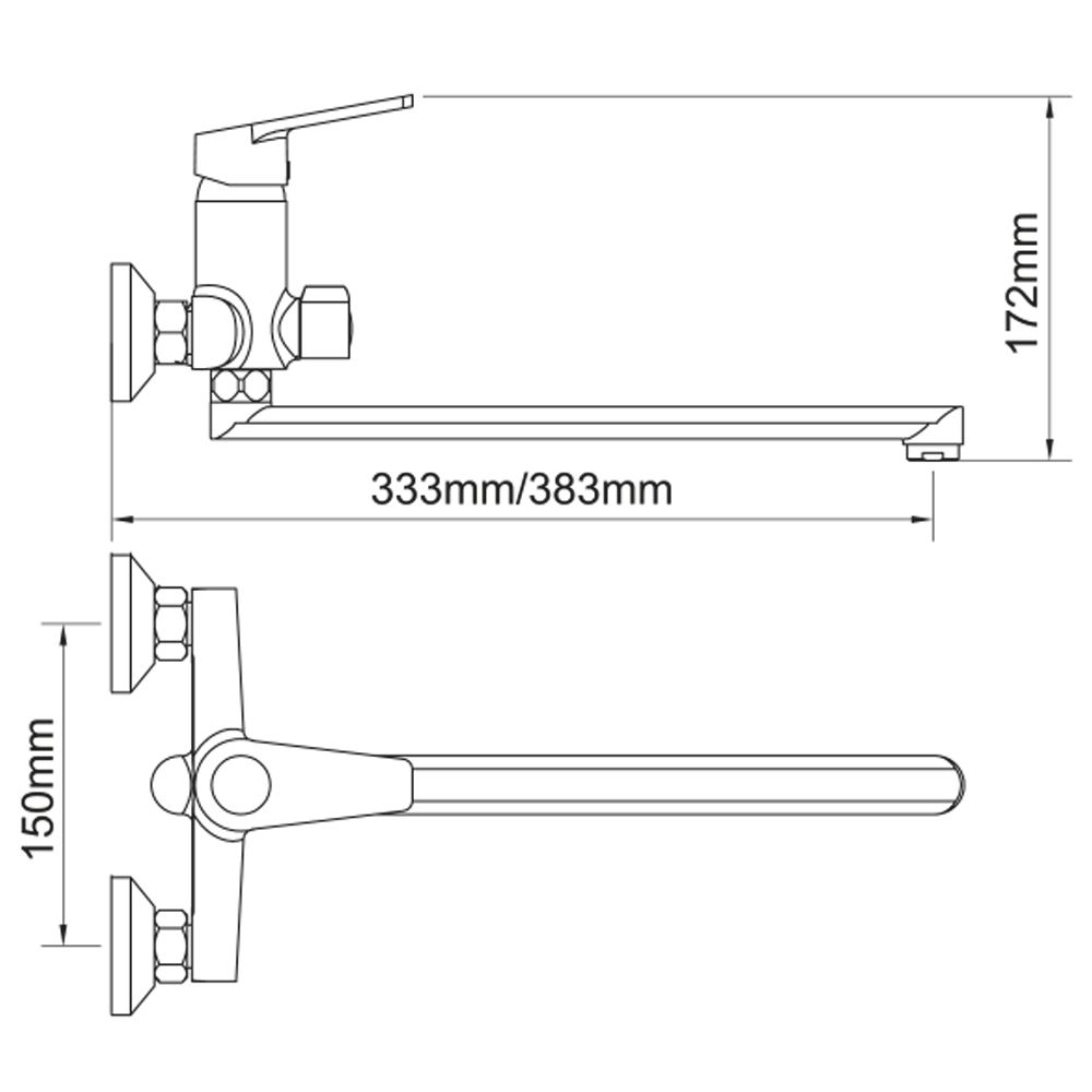 Модель оснащена прямим поворотним виливом довжиною 350 мм, що обертається на 360°, дозволяючи комфортно користуватися водою як для ванни, так і для рукомийника поруч.