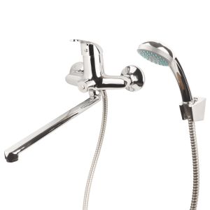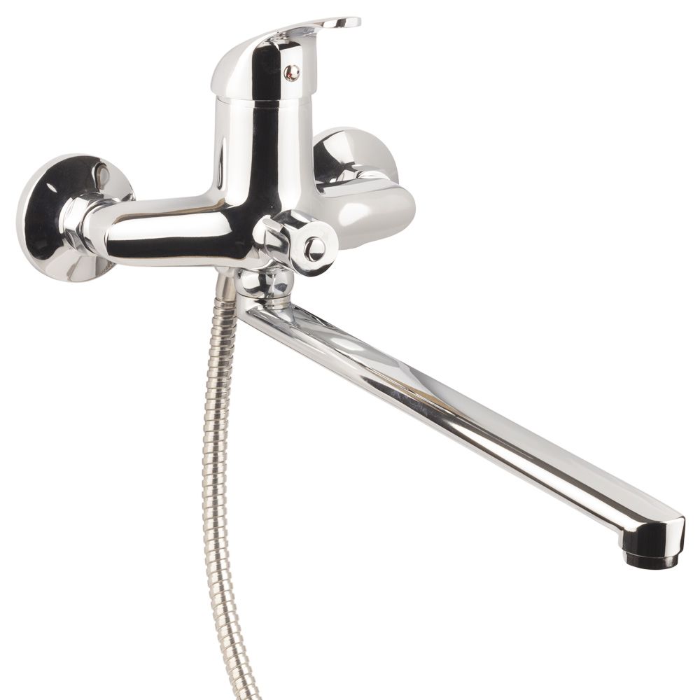 Сучасний одноважільний змішувач для ванни з прямим поворотним виливом довжиною 350 мм і вбудованим картриджним дивертором. Завдяки хромонікелевому покриттю виріб має дзеркальний блиск і надійний захист від корозії. Конструкція забезпечує плавне регулювання потоку та температури води, а поворотний вилив на 360° робить змішувач зручним у використанні.