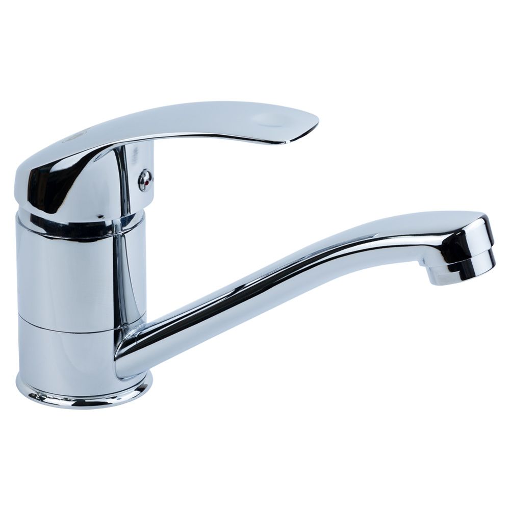 Кухонний змішувач TAU SD-2B143C обладнаний прямим поворотним виливом довжиною 150 мм, що робить його зручним для використання з компактними мийками. Модель має одноважільне керування, яке дозволяє легко регулювати напір і температуру води. За плавність роботи та довговічність відповідає керамічний картридж 40.