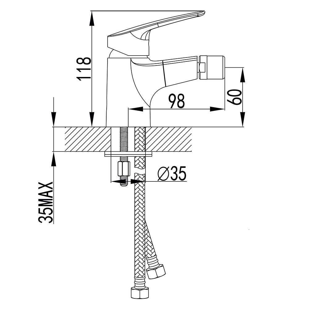 — одноважільний змішувач із керамічним картриджем 35 мм та латунним корпусом. Має надійне кріплення на шпильці та комплектується гнучкими шлангами з нержавіючої сталі.