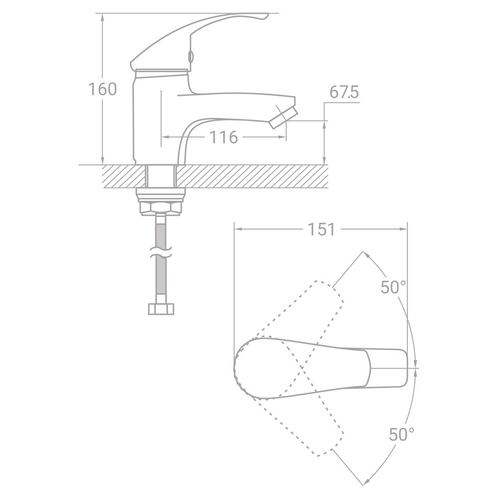 — дизайнерський одноважільний змішувач із монолітним виливом та незвичною ручкою з вигином. Підійде для сучасних інтер’єрів ванних кімнат, де важливі стиль, компактність і надійність.