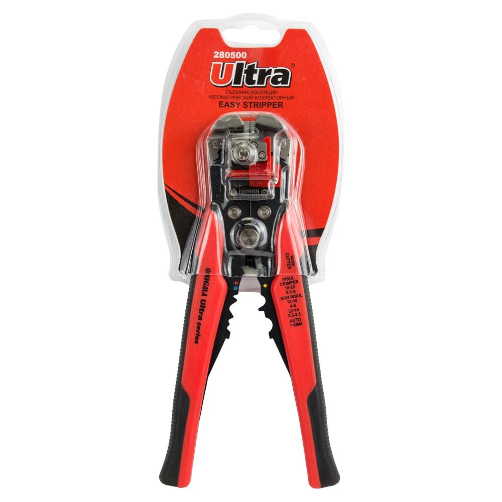 Автоматичний знімач ізоляції ULTRA 4371032 призначений для швидкого та акуратного зняття ізоляції з проводів перерізом від 0,2 до 6 мм. Інструмент має зручний механізм самоналаштування, що дозволяє працювати з різними типами кабелів без їх пошкодження. Підійде для електромонтажних робіт у побуті та професійному використанні.