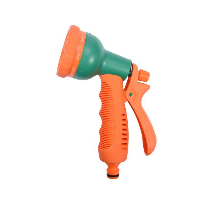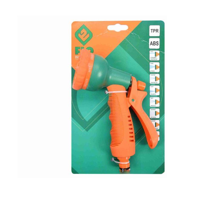 Зрощувач-пістолет 8-режимний FLO до шлангу 1/2" забезпечує зручне та ефективне поливання рослин. Він має пульсуючий (імпульсний) вид зрошувача і не потребує наявності гідромотора. Максимальний діаметр покриття становить 20 метрів. Цей зрощувач-пістолет виготовлений з високоякісного ABS-пластику, що забезпечує його міцність та довговічність. Його можна зручно і надійно приєднати до шлангу діаметром 1/2";. Завдяки 8-режимному регулюванню, ви зможете вибрати потрібний режим поливу - від легкого дощу до сильного струменя.