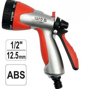 Пістолет-розпилювач оснащений 8 режимами подачі води, регулюванням інтенсивності струменя та фіксатором для безперервної роботи.